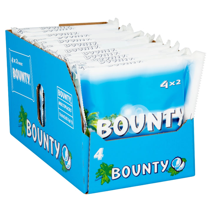 The Bounty bar is a moist tender coconut bar covered in thick milk chocolate, a delicious flavour combination. Each great value multipack holds 4 duo bars, perfect for sharing.