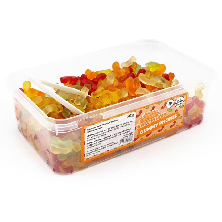 Gummy sweets are always a popular pick n mix choice and these gummy phones are no exception. With an assortment of fruity flavours, including apple, lemon, orange, pineapple and strawberry, these tasty treats are bound to be a popular choice. Each Crazy Candy Factory Sweetshop Tub contains, on average, 600 sweets. Crazy Candy Factory Sweetshop Tubs are the perfect addition to your sweet tub range, packed full of everyone's favourite sweets and all the sweets are 100% halal. Shop the full tub range here