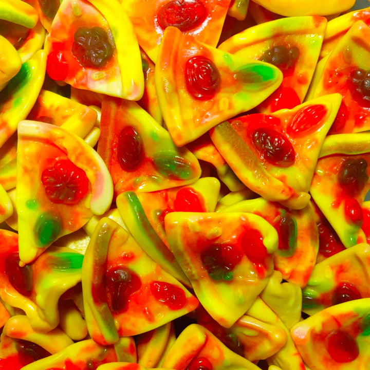 Chewy, jelly, pizza-shaped sweets. A fun colourful treat. 1kg. Halal suitable.