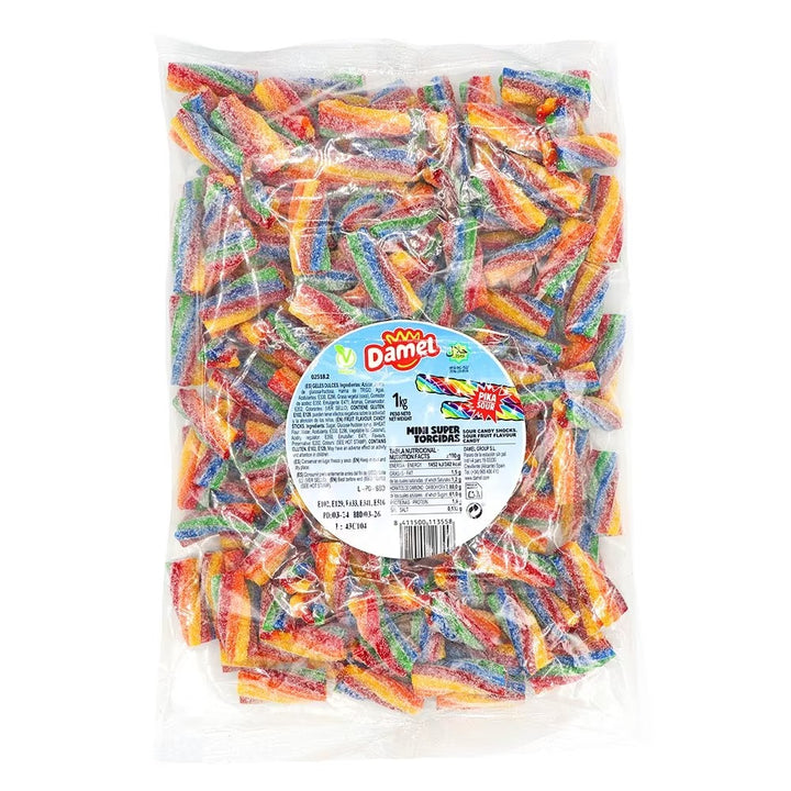 Damel Sour Candy Shocks are super sour, fizzy, rainbow coloured sweets. These sweets are one of our bestsellers, sold in 1kg bags they will be a colourful addition to your pick and mix stand.