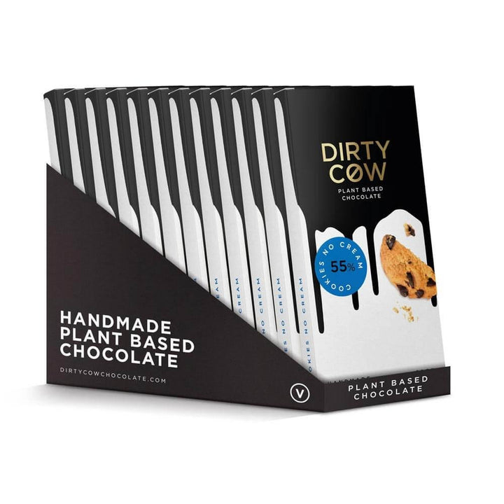 Enjoy all the cookies with none of the cream! The Dirty Cow Cookies No Cream Chocolate Bar is a deliciously creamy dairy free chocolate, scattered with crunchy cookie pieces. Each bar is handmade with individual ingredients dunked, placed, and sometimes thrown onto a creamy chocolate bar. Dirty Cow chocolate is animal and dairy free with all cocoa sourced from certified sustainable farming. And if that isn’t enough, all packaging is 100% recyclable.