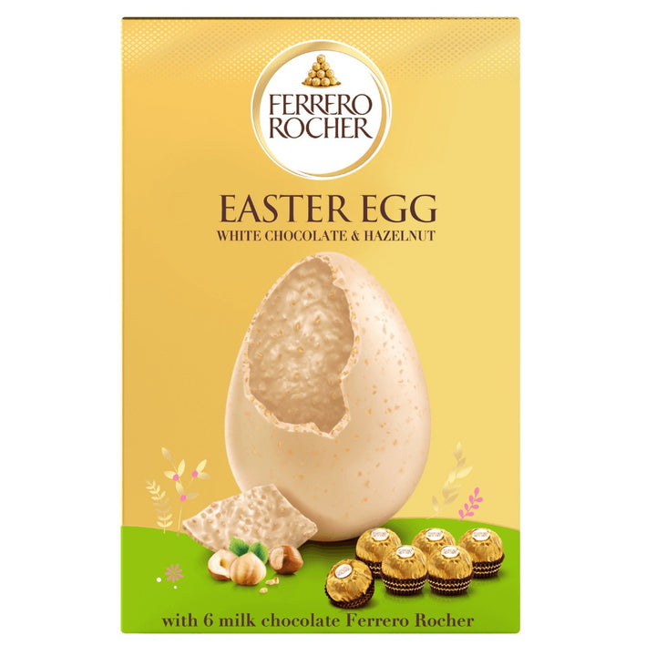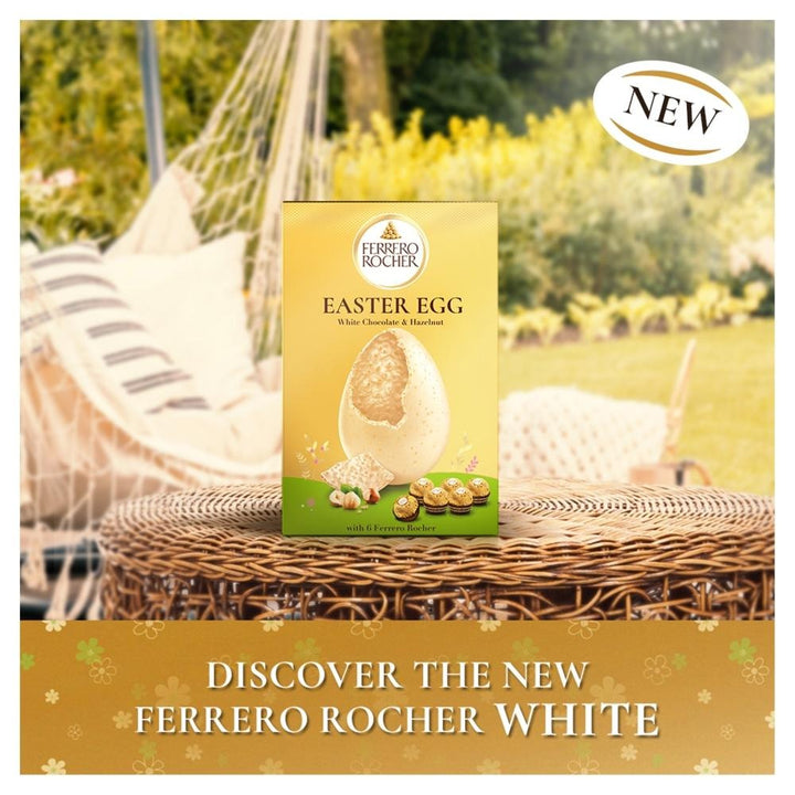 Make Easter better with the Ferrero Rocher White Golden Easter Egg. This delicious white chocolate and hazelnut shell, containing 6 Ferrero Rocher inside, is perfect for gifting at Easter. Get wrapped up in the moment with Ferrero Rocher.