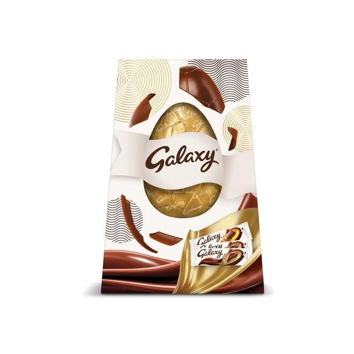 Enjoy smooth velvety chocolate this Easter with Galaxy. Inside each box, you'll find an extra-large Galaxy chocolate egg, 2 bars of silky smooth Galaxy milk chocolate and a bar of gooey Galaxy Caramel. The perfect Easter treat for a loved one or yourself.