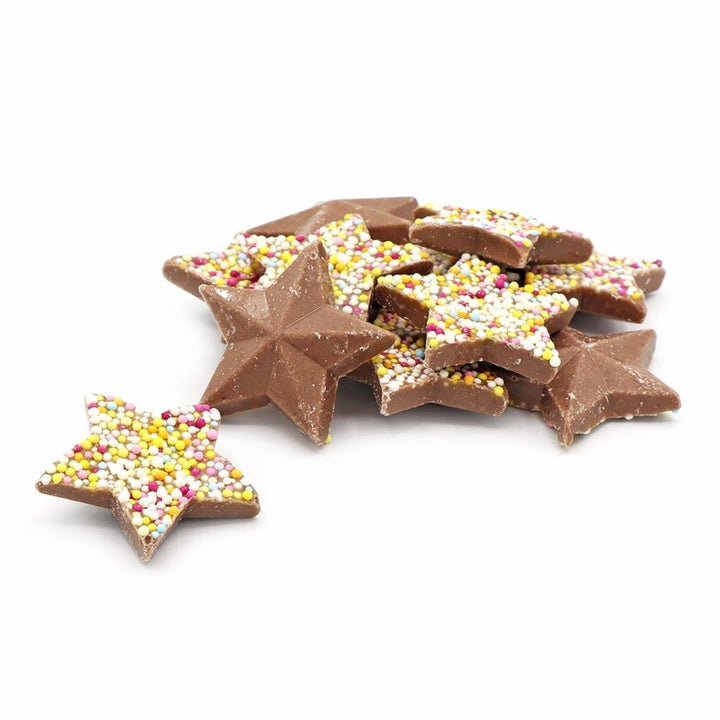 These Milk Chocolate Starz are very similar to Snowies and Jazzies, but in a fun shape. Milk chocolate flavour candy with a crunchy candy coating, these Starz are delicious. Ready to sell directly from the tub, these will make a tasty addition to your 5p sweet range.