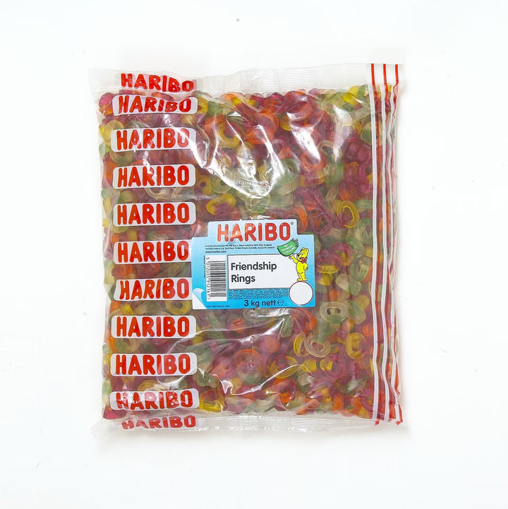 Brightly coloured with ample play value. These are the factors that keep sales of Haribo Friendship Rings as buoyant as they are. These fruit flavour jelly rings are popular with all ages of children who love to adorn their fingers with them before eating them all up! Add some to your pick and mix display and see the results for yourself.