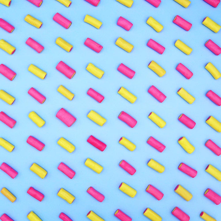 Rhubarb and custard flavoured sweets can come in many different formats. These Haribo Rhubarb and Custard sweets are not like the traditional hard boiled ones, being softer to eat and perhaps a more contemporary idea. Just as delicious though.