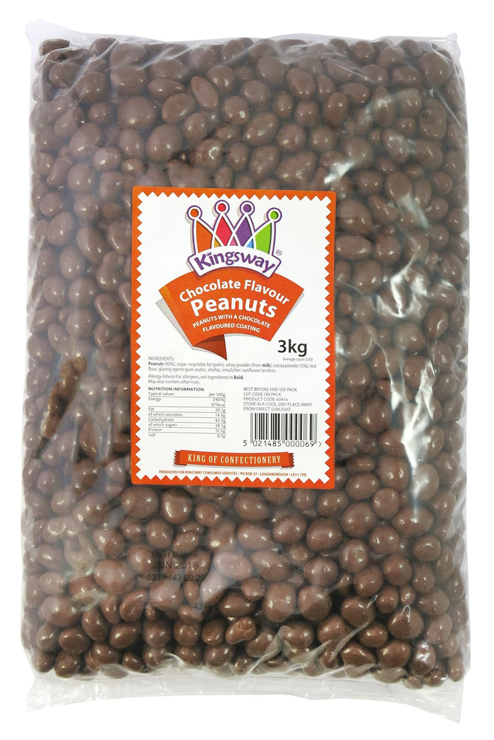 Chocolate Flavour Peanuts are always a popular choice in pick n mix displays. A traditional favourite, especially popular around Christmas time. Packed in a bulk bag these Chocolate Covered Peanuts are perfect to sell from a jar or add to your pick and mix stand. Take your pick 'n' mix selection to the next level with Kingsway! From retro classics to innovative new flavours, Kingsway provides the perfect way to create your ultimate sweet range. Don’t miss the Kingsway Pick 'n' Mix Deal to mix, match, and save, or explore the Kingsway Mega Value range for unbeatable prices. Stock up today and expand your product offering with Kingsway.