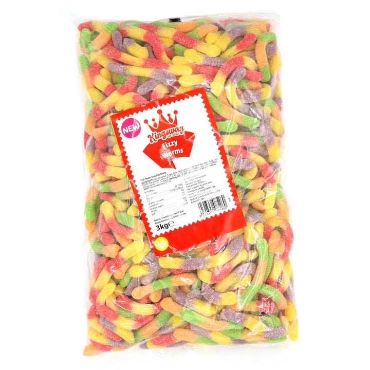 These Kingsway Fizzy Worms are packed full of fruity flavours that your customers are going to love. Enjoy lemon, strawberry, and orange flavoured jelly sweets coated in sour sugar. Packed into a 3kg bulk bag, these fizzy fruit worms are going to make a great addition to your pick and mix selection! Take your pick 'n' mix selection to the next level with Kingsway! From retro classics to innovative new flavours, Kingsway provides the perfect way to create your ultimate sweet range. Don’t miss the Kingsway Pick 'n' Mix Deal to mix, match, and save, or explore the Kingsway Mega Value range for unbeatable prices. Stock up today and expand your product offering with Kingsway.