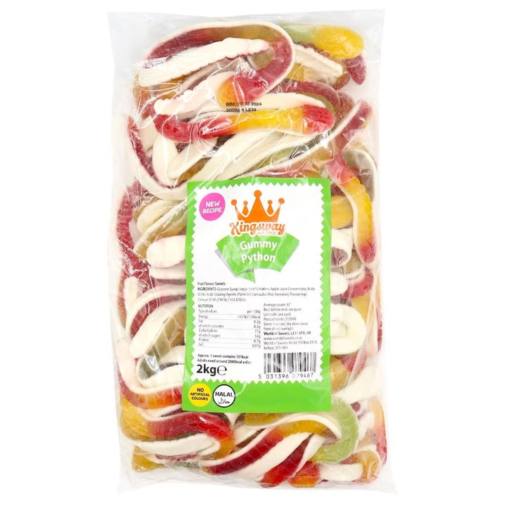 Gummy snakes are an all-time favourite pick & mix sweet. Long lengths of gummy sweets with a sweet foam belly. A guaranteed sell out in any sweet store. Add these Kingsway gummy pythons to your pick and mix sweets display or why not pack with other jungle pick and mix sweets in smaller retain bags and boxes. Take your pick 'n' mix selection to the next level with Kingsway! From retro classics to innovative new flavours, Kingsway provides the perfect way to create your ultimate sweet range. Don’t miss the Kingsway Pick 'n' Mix Deal to mix, match, and save, or explore the Kingsway Mega Value range for unbeatable prices. Stock up today and expand your product offering with Kingsway.