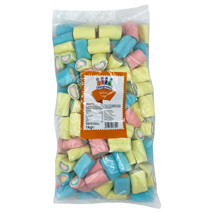 The Kingsway Mallow Tubes are soft vanilla flavour marshmallow tubes in a variety of brihgt colours. With their soft bite and delicious taste, these marvellous mallows are perfect for parties, pick ‘n’ mix displays or packing into smaller retail packs. Take your pick 'n' mix selection to the next level with Kingsway! From retro classics to innovative new flavours, Kingsway provides the perfect way to create your ultimate sweet range. Don’t miss the Kingsway Pick 'n' Mix Deal to mix, match, and save, or explore the Kingsway Mega Value range for unbeatable prices. Stock up today and expand your product offering with Kingsway.
