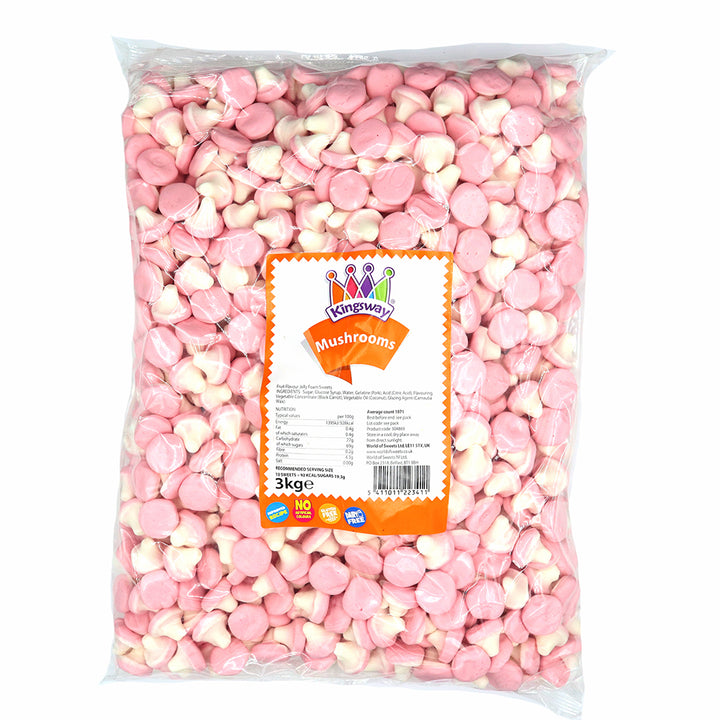 Children love to choose sweets that look like food in some way and Kingsway Mushrooms are no exception. A fruit flavoured jelly foam sweet, these are soft to eat and look attractive on display. You might also try coconut mushrooms too. Packed in a bulk bag ready to decant into your pick and mix sweets display or smaller amounts as required. Take your pick 'n' mix selection to the next level with Kingsway! From retro classics to innovative new flavours, Kingsway provides the perfect way to create your ultimate sweet range. Don’t miss the Kingsway Pick 'n' Mix Deal to mix, match, and save, or explore the Kingsway Mega Value range for unbeatable prices. Stock up today and expand your product offering with Kingsway.