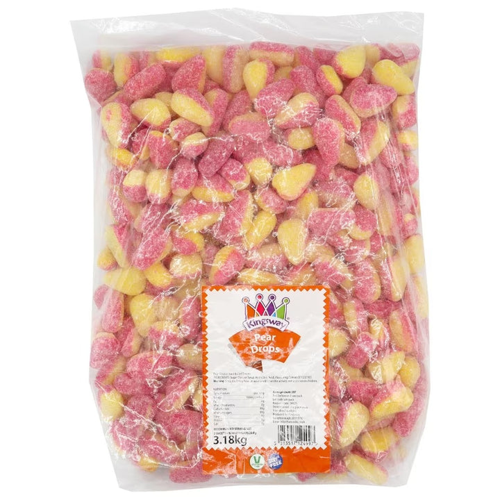Traditional boiled sweets like Pear Drops really stand the test of time. Kingsway Pear Drops are lovely oval shaped boiled sweets in yellow and pink. Packed in a bulk bag so you can add them to a pick and mix sweets display or sell them from a traditional display jar. Take your pick 'n' mix selection to the next level with Kingsway! From retro classics to innovative new flavours, Kingsway provides the perfect way to create your ultimate sweet range. Don’t miss the Kingsway Pick 'n' Mix Deal to mix, match, and save, or explore the Kingsway Mega Value range for unbeatable prices. Stock up today and expand your product offering with Kingsway.