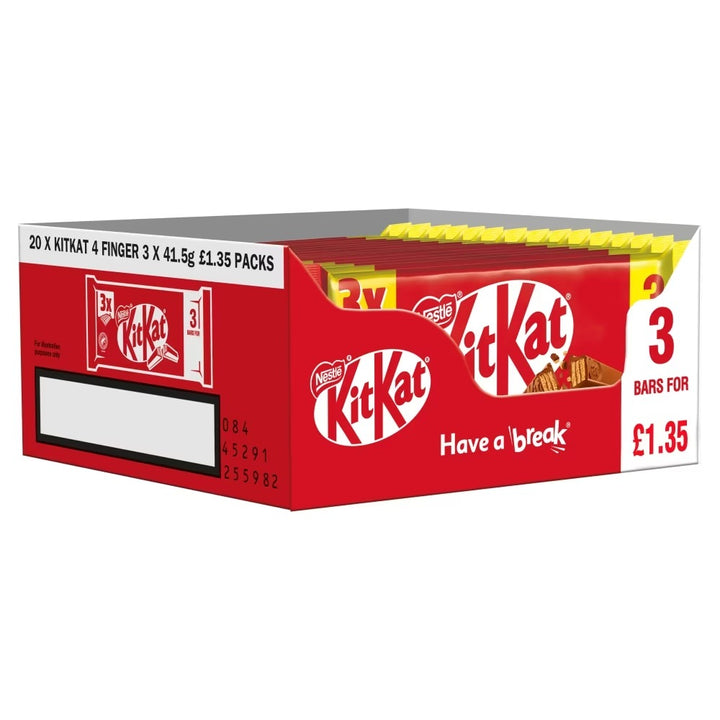 KitKat 4 Finger Milk Chocolate Bar 3 Pack Multipack 124.5g PMP £1.35 20 x 125g Bars