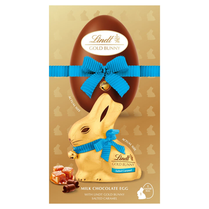 Lindt Gold Bunny Milk Chocolate Egg With Lindt Gold Bunny Salted Caramel 195g