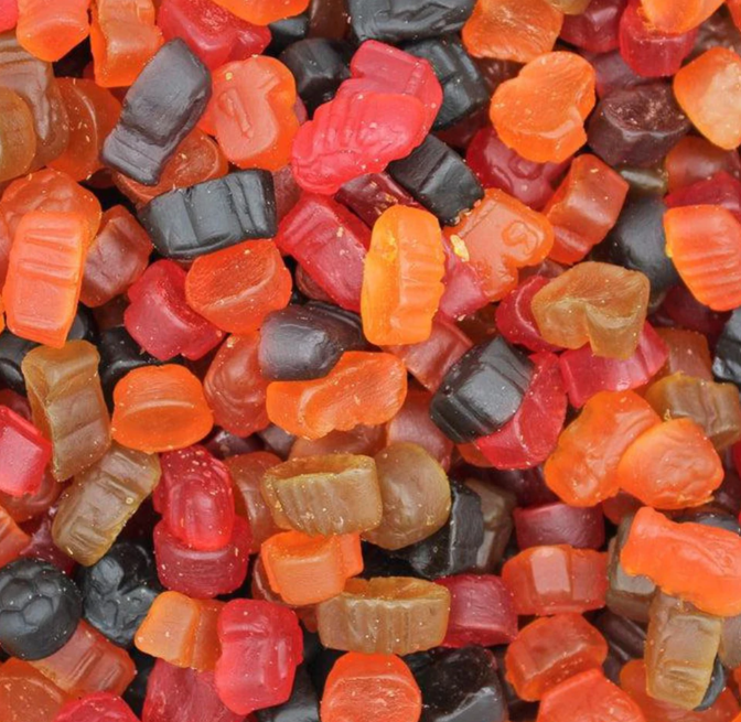 Hard liquorice and fruit flavoured gummy sweets. 2kg.