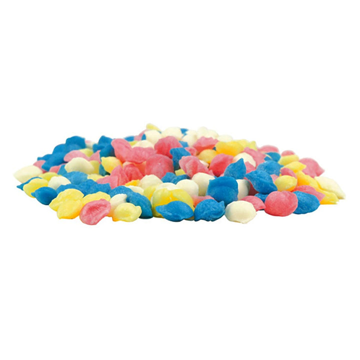 White, pink, blue and yellow coloured pips with a fizzy sherbet flavour, these are always a popular choice with customers. Royale Handmade Pips are the world's smallest boiled sweets.