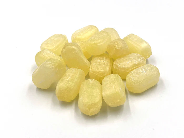 Individually wrapped crystallised lemon flavoured hard boiled sweets. 3kg. Vegetarian.